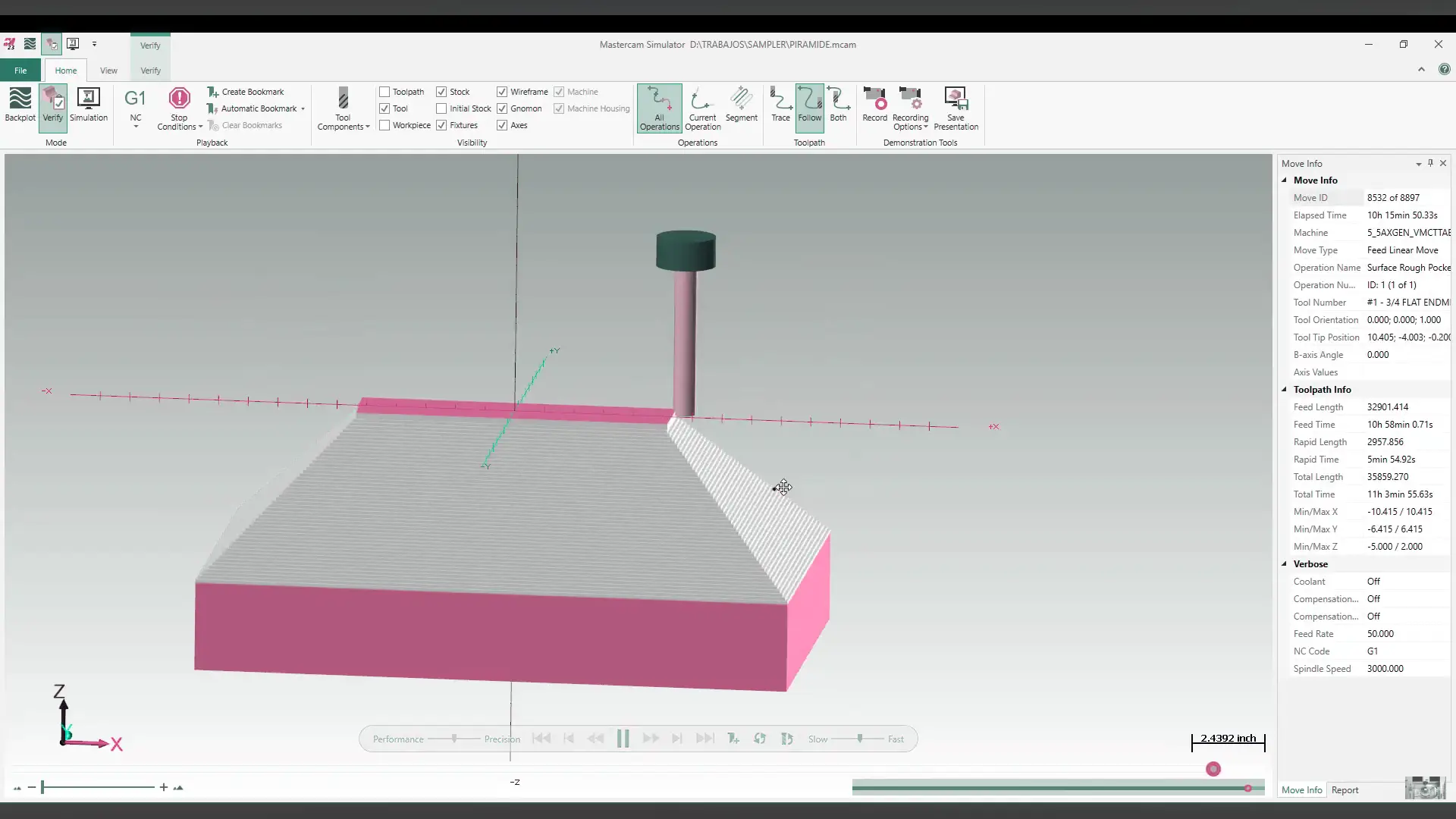 - Detección de Colisiones en Máquina: Una simulación mucho más realista que detecta interferencias entre la pieza, la herramienta y los componentes de la máquina antes de empezar a cortar.