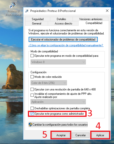 Si Proteus no es ejecutado como administrador ocurrirá un error al momento de buscar las librerías de componentes, con los pasos anteriores se soluciona este problema, dado que configuramos Proteus para que siempre se ejecute como administrador.